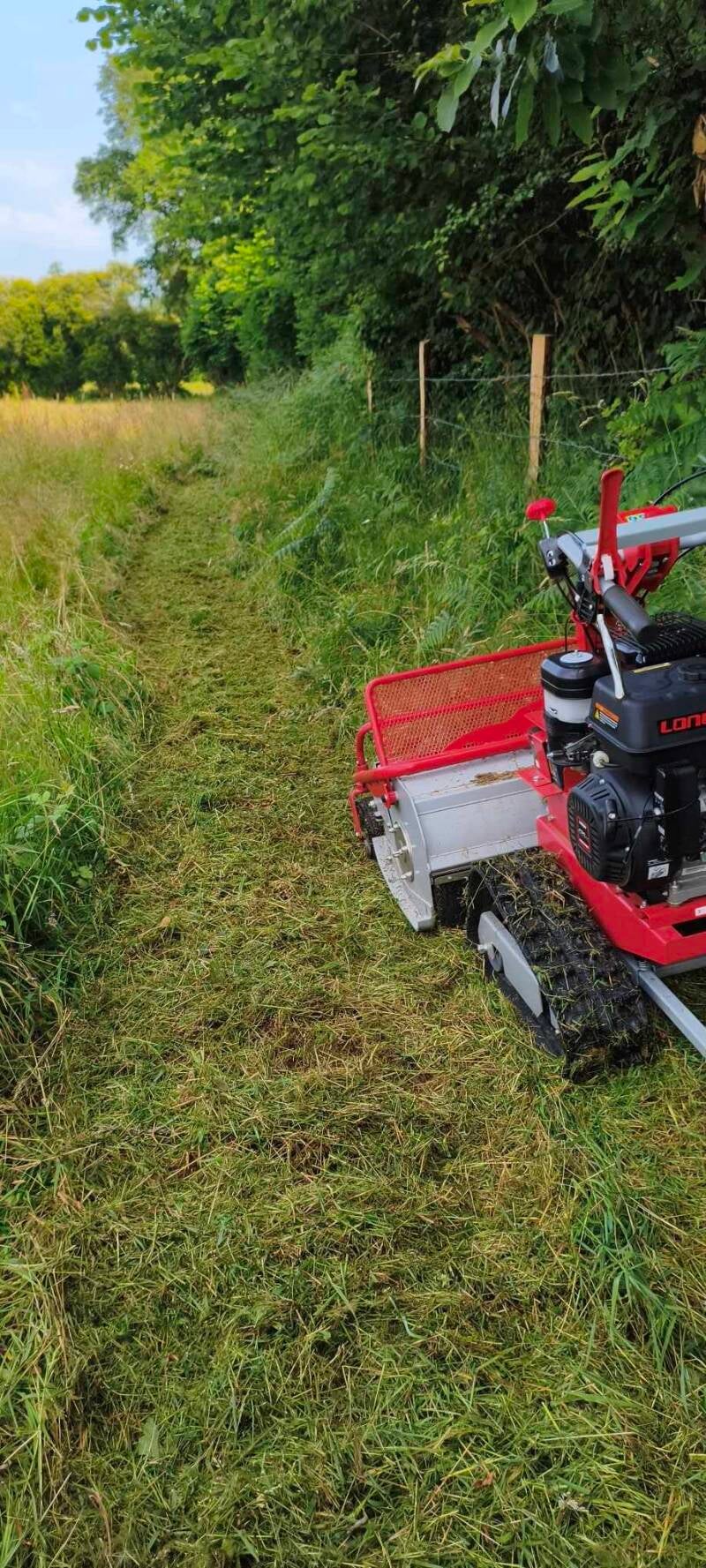 prestation avec une débrousailleuse a couteaux de 86 cm de large sur chenilles spécial terrain difficile