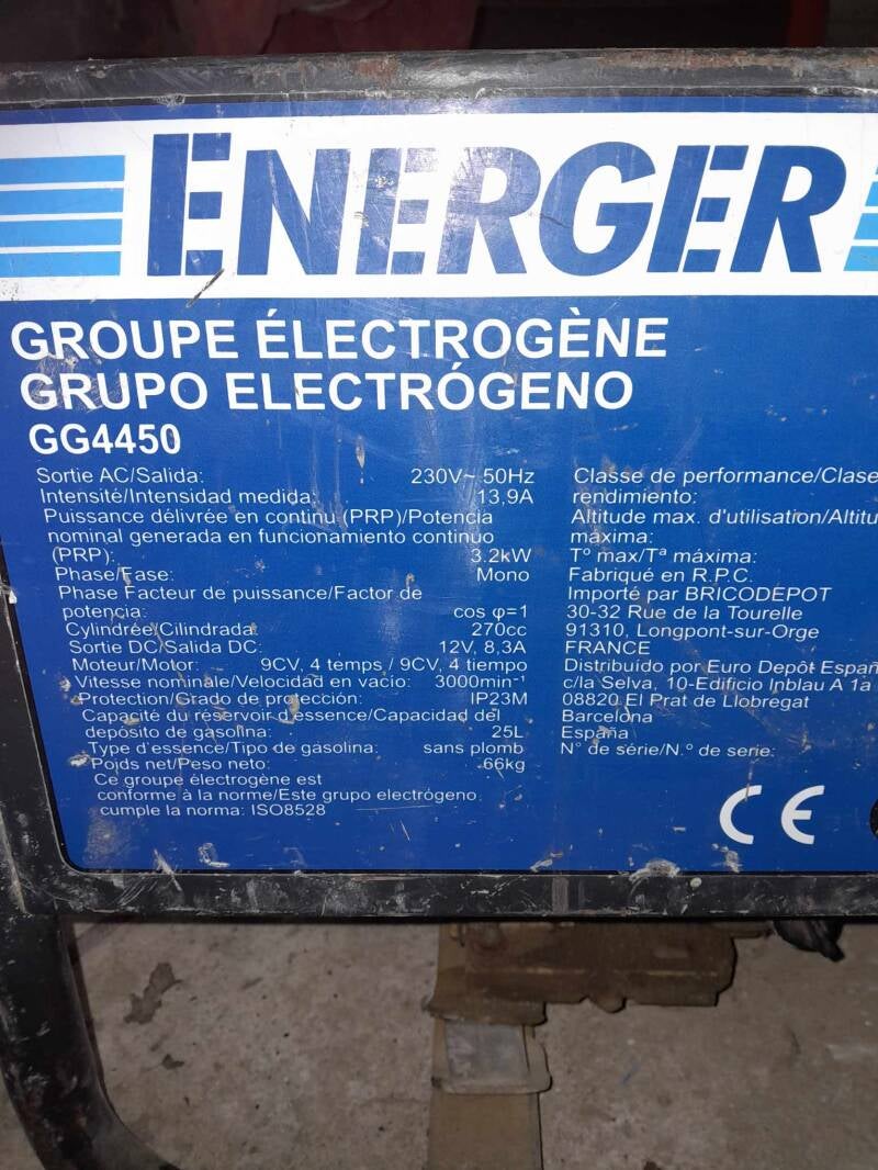 Equipé voltmètre, 2 prises 230 v sécurité manque huile, Type de régulation: AVR - Tension de sortie 230V - - Moteur 4 Temps - Moteur 9 HP Moteur 3000 trs/min - Poids : 60 kg,